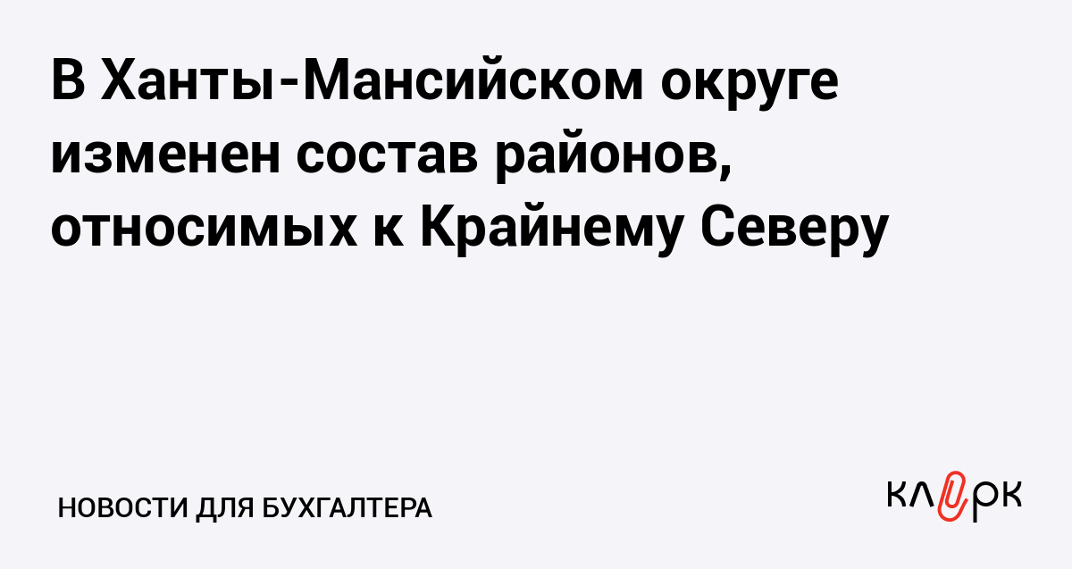 В Ханты-Мансийском округе изменен состав районов, относимых к Крайнему Северу