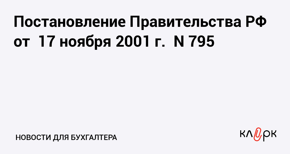 Постановление Правительства РФ от 17 ноября 2001 г. N 795