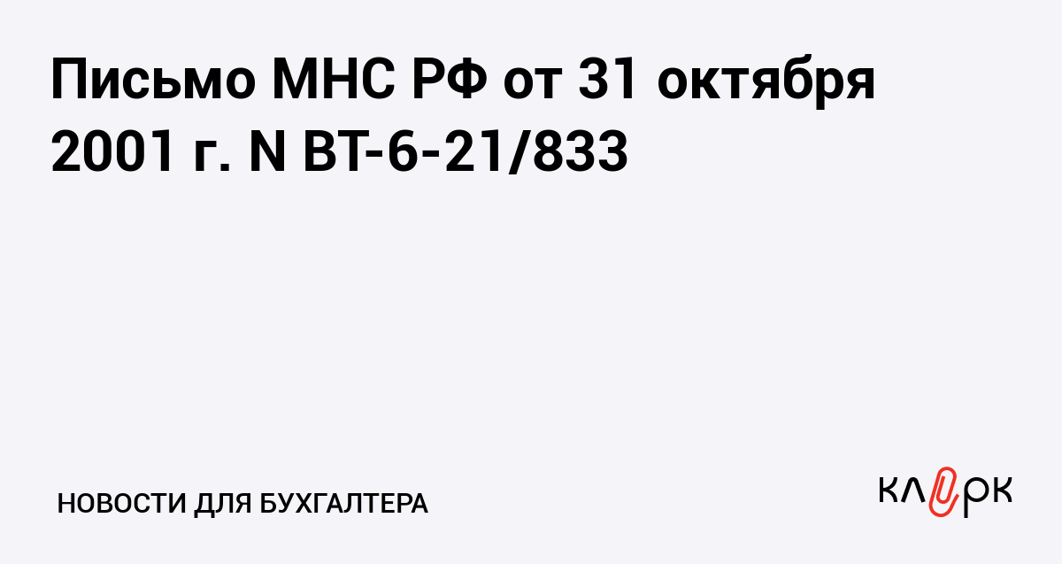 Письмо МНС РФ от 31 октября 2001 г. N ВТ-6-21/833
