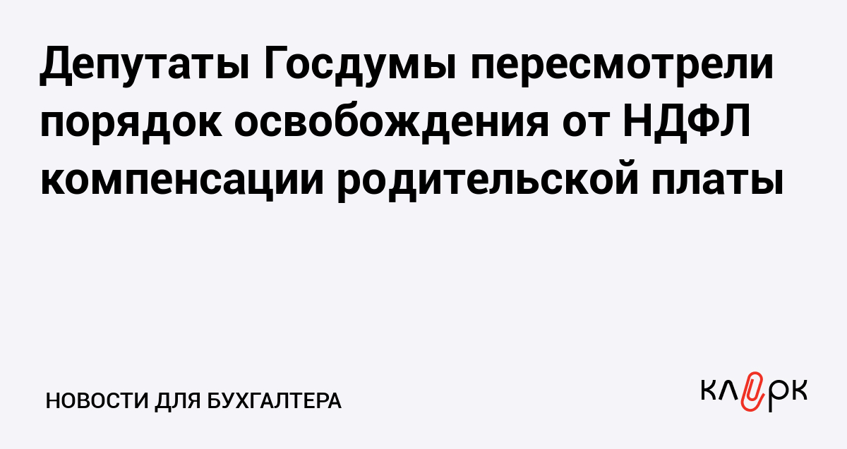 Депутаты Госдумы пересмотрели порядок освобождения от НДФЛ компенсации родительской платы