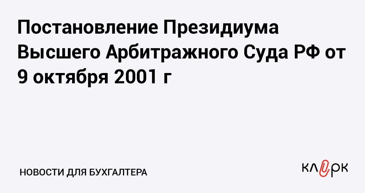 Постановление Президиума Высшего Арбитражного Суда РФ от 9 октября 2001 г