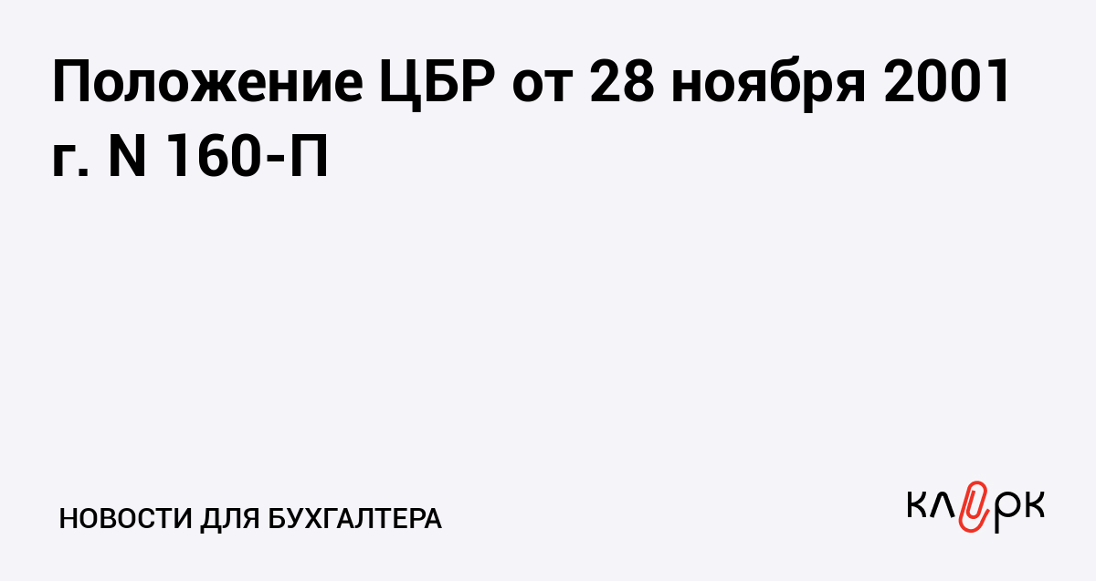Положение ЦБР от 28 ноября 2001 г. N 160-П