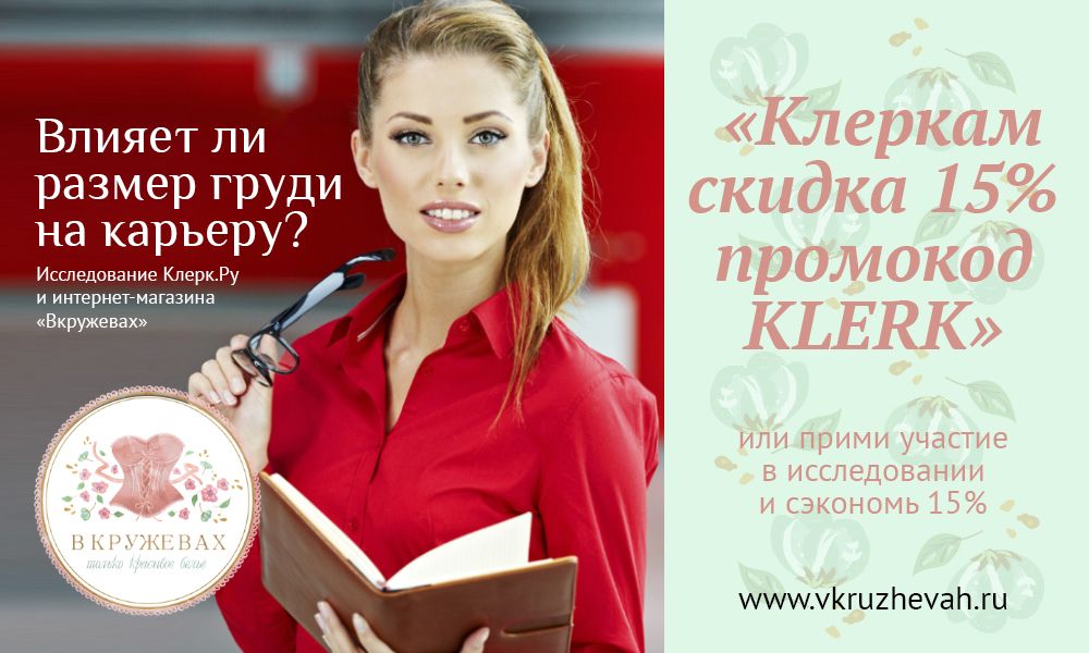Магазин нижнего белья и купальников В КРУЖЕВАХ дарит посетителям портала klerk.ru возможность приобрести элитное нижнее белье и купальники со скидкой 15%. Для этого при оформлении заказа нужно вести код KLERK в специальное окошко.