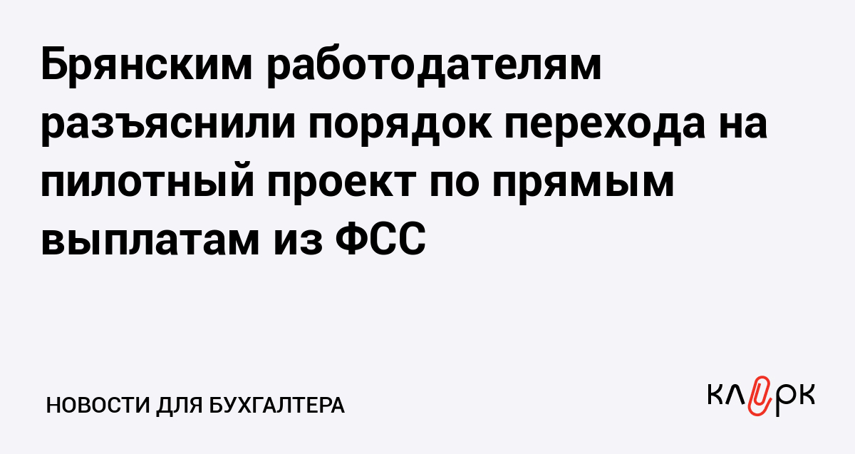 С 1 июля 2016 года на территории Брянской области будет реализован Пилотный проект «Прямые выплаты», предусматривающий выплату пособий работающим гражданам непосредственно Фондом социального страхования РФ.