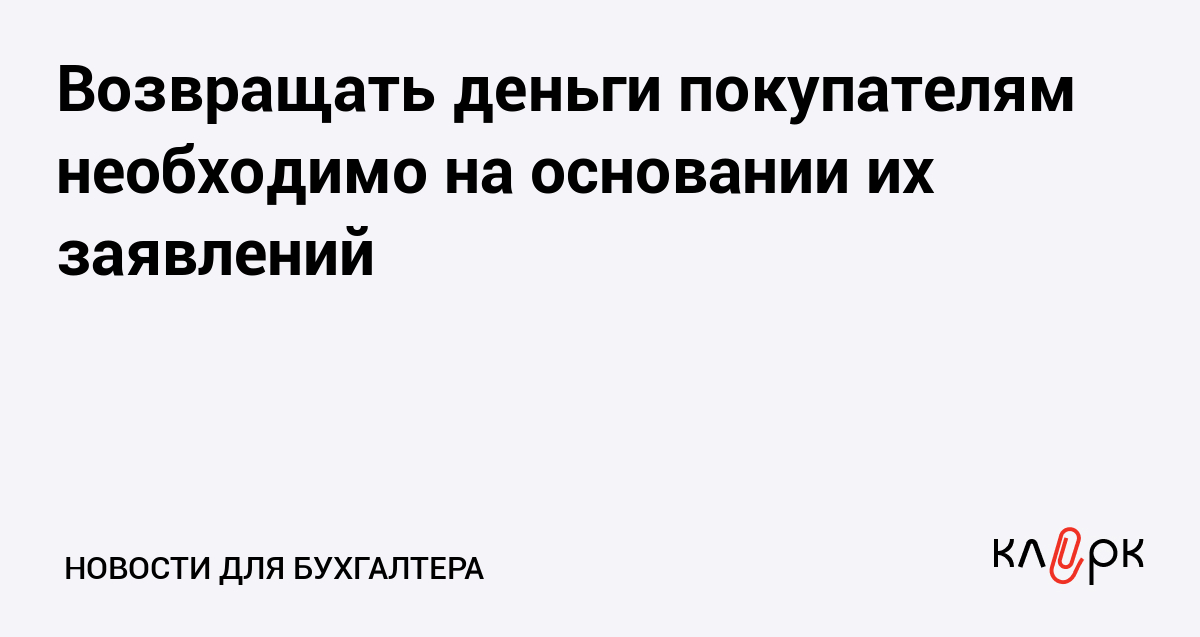 Возвращать деньги покупателям необходимо на основании их заявлений