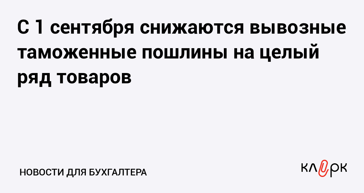 С 1 сентября снижаются вывозные таможенные пошлины на целый ряд товаров
