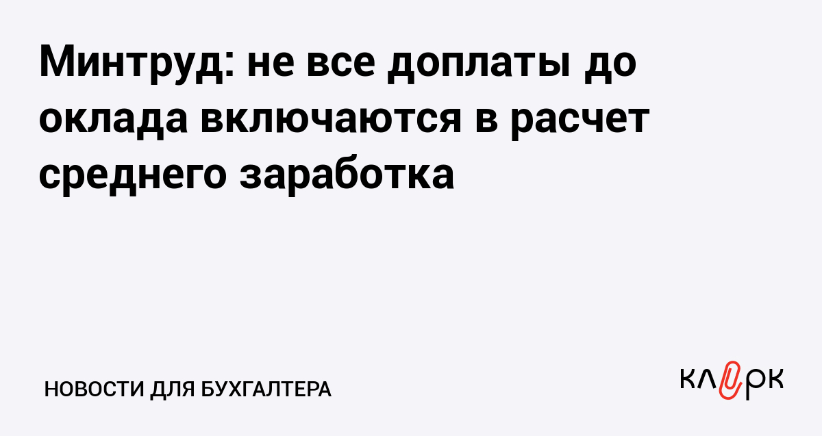 Минтруд: не все доплаты до оклада включаются в расчет среднего заработка