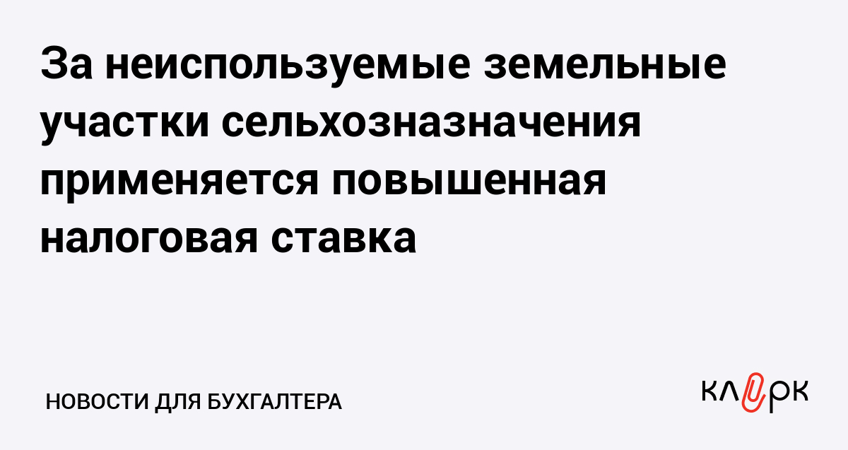 За неиспользуемые земельные участки сельхозназначения применяется повышенная налоговая ставка