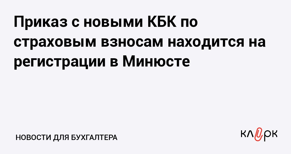 Приказ с новыми КБК по страховым взносам находится на регистрации в Минюсте
