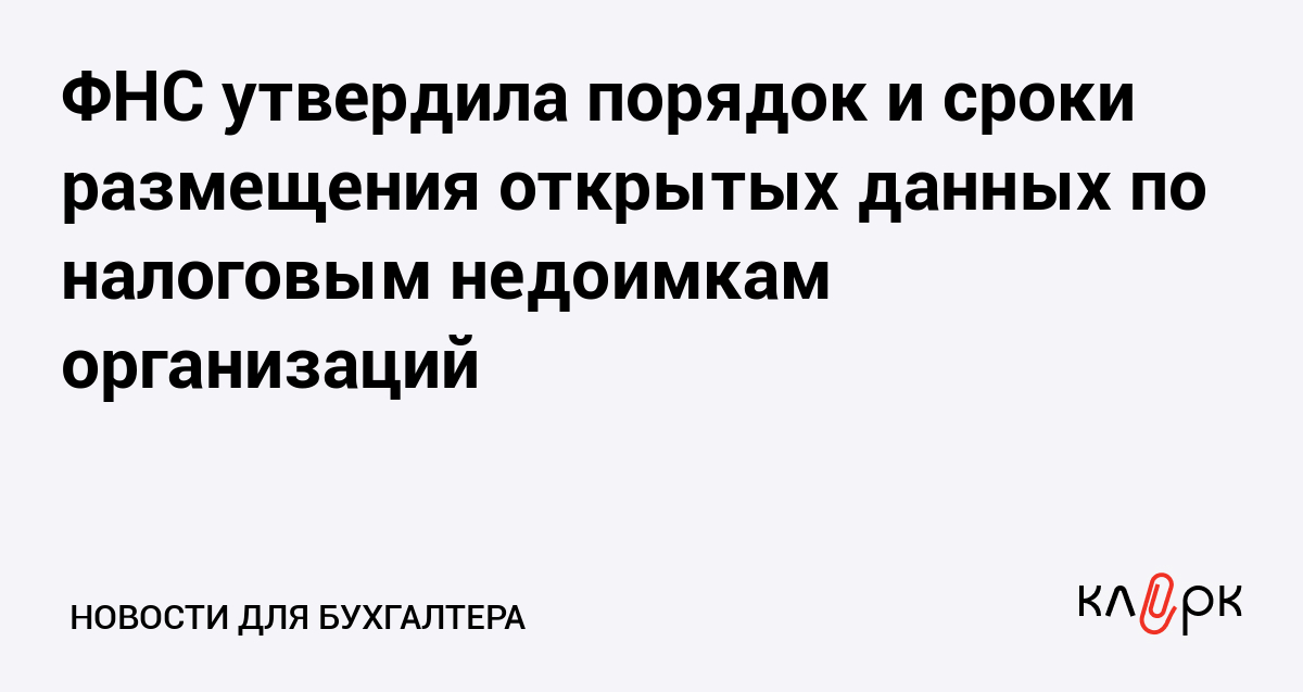 ФНС утвердила порядок и сроки размещения открытых данных по налоговым недоимкам организаций