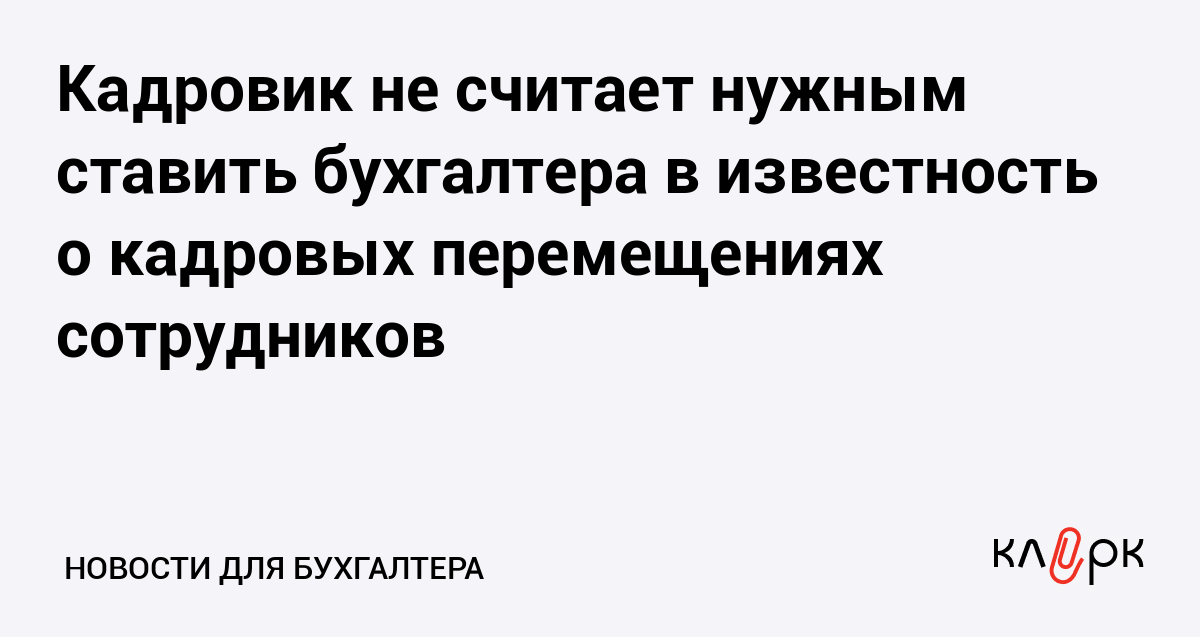 Кадровик не считает нужным ставить бухгалтера в известность о кадровых перемещениях сотрудников