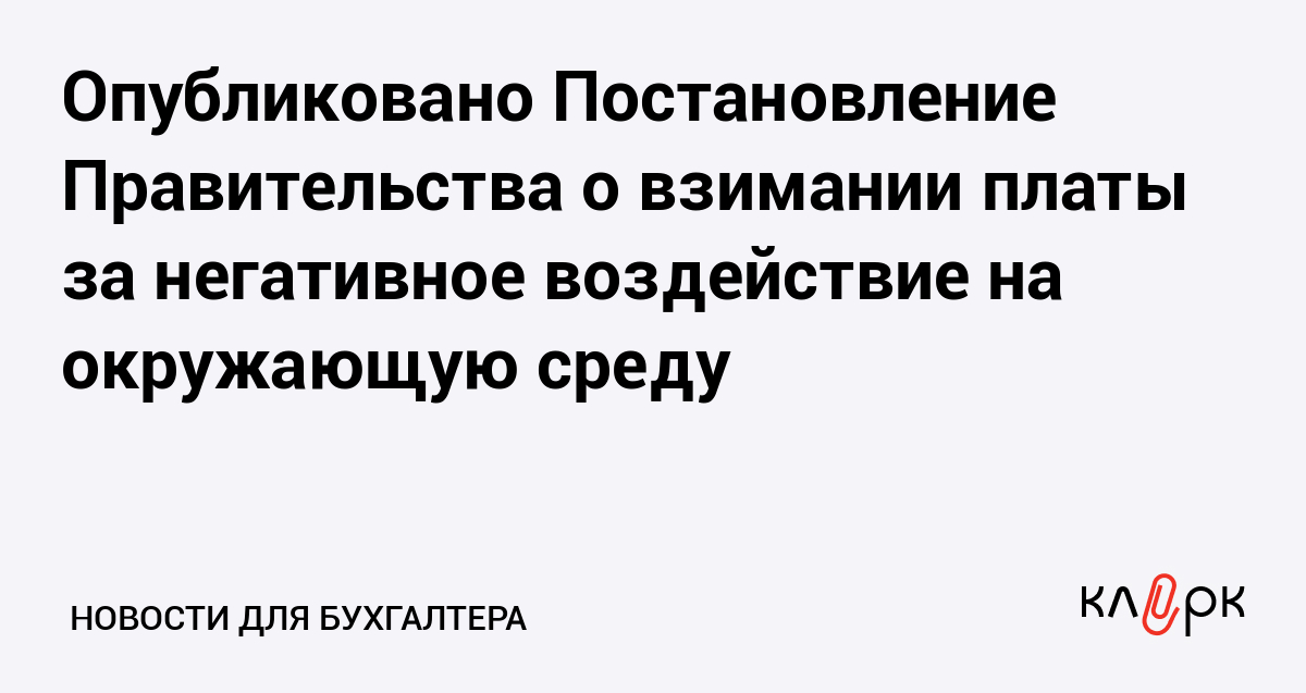 Опубликовано Постановление Правительства о взимании платы за негативное воздействие на окружающую среду