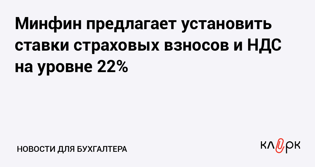 Минфин предлагает установить ставки страховых взносов и НДС на уровне 22%