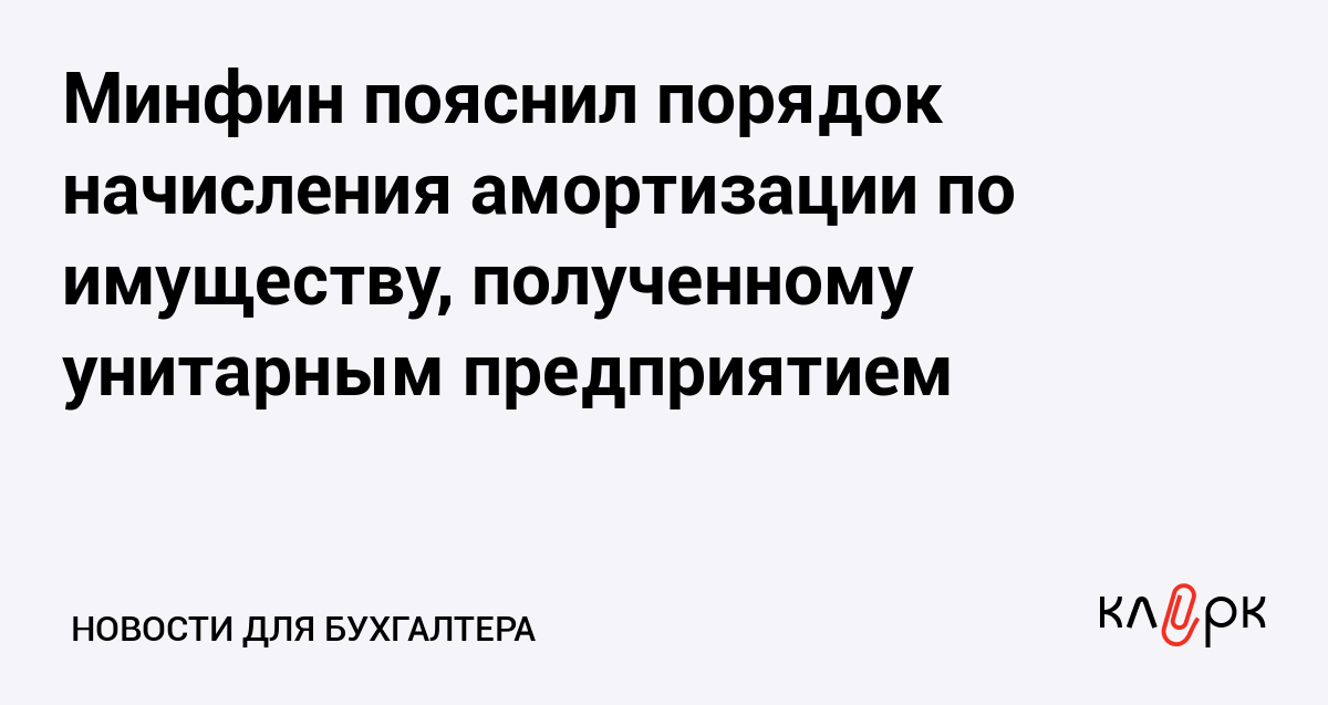 Минфин пояснил порядок начисления амортизации по имуществу, полученному унитарным предприятием