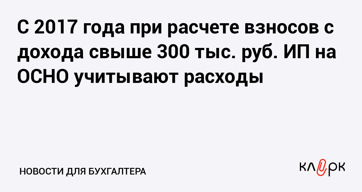 С 2017 года при расчете взносов с дохода свыше 300 тыс. руб. ИП на ОСНО учитывают расходы