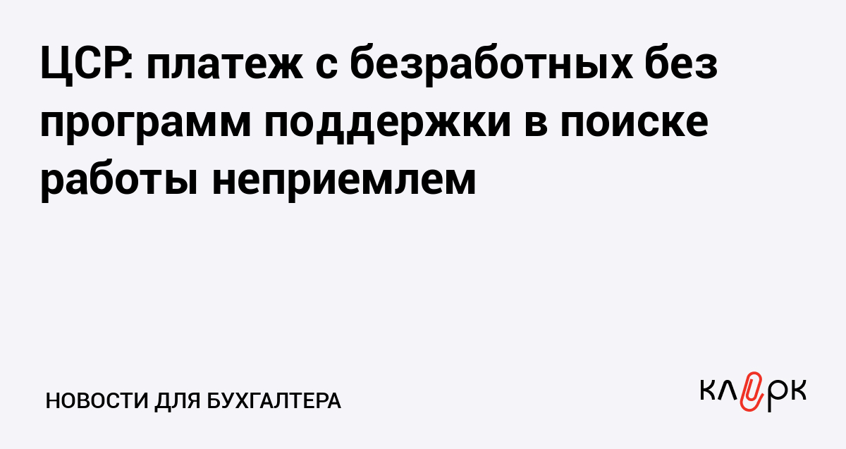 ЦСР: платеж с безработных без программ поддержки в поиске работы неприемлем