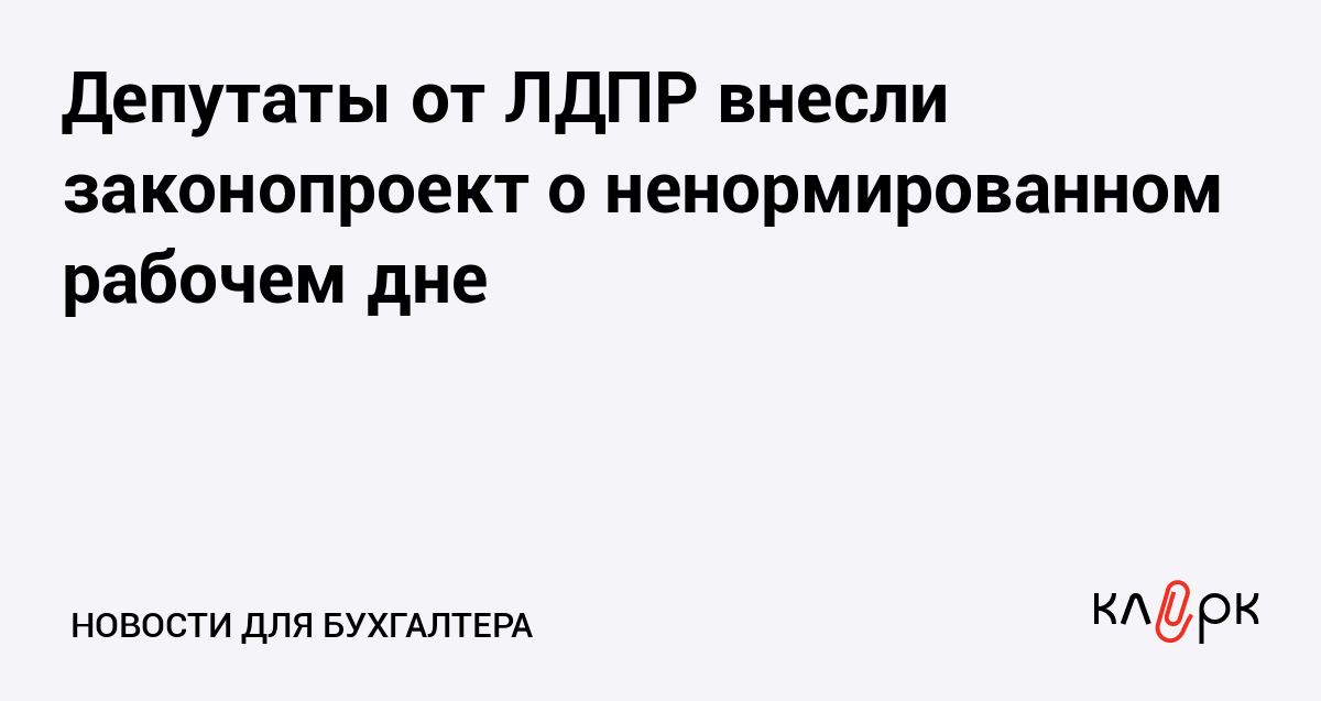 Депутаты от фракции ЛДПР внесли в Госдуму законопроект с поправками в Трудовой кодекс, касающимися ненормированного рабочего дня.