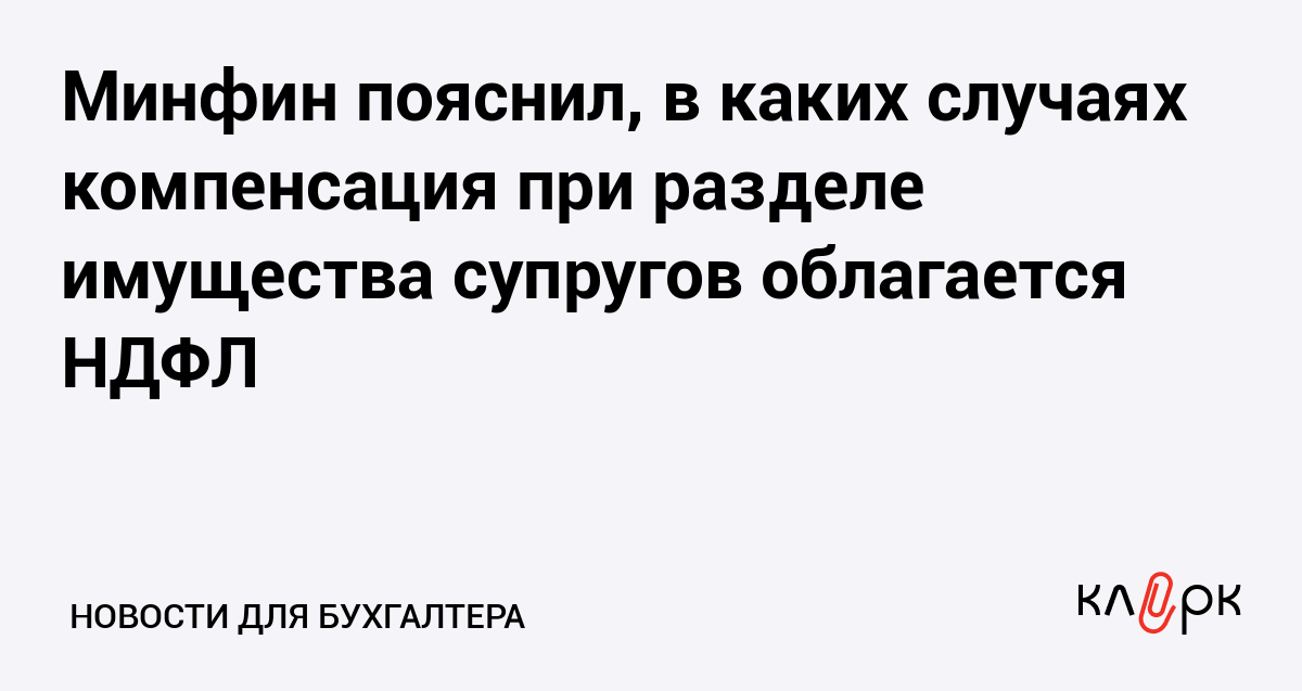 Минфин пояснил, в каких случаях компенсация при разделе имущества супругов облагается НДФЛ