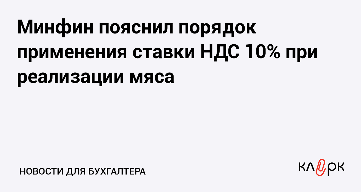 Минфин пояснил порядок применения ставки НДС 10% при реализации мяса