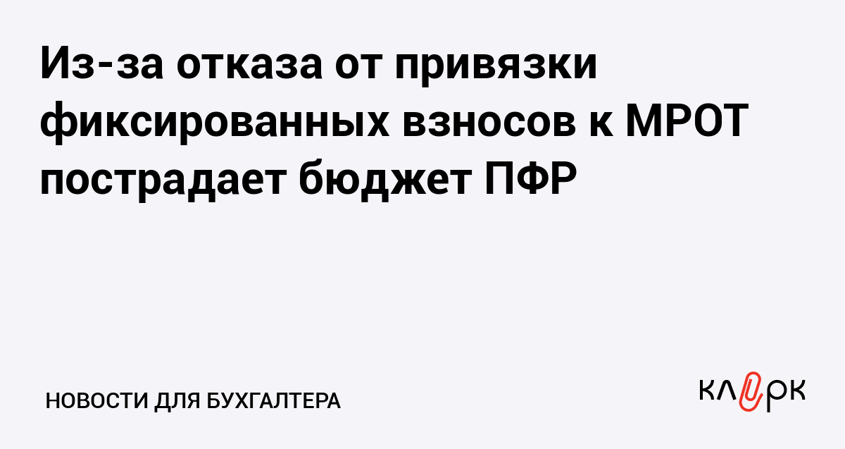 Из-за отказа от привязки фиксированных взносов к МРОТ пострадает бюджет ПФР