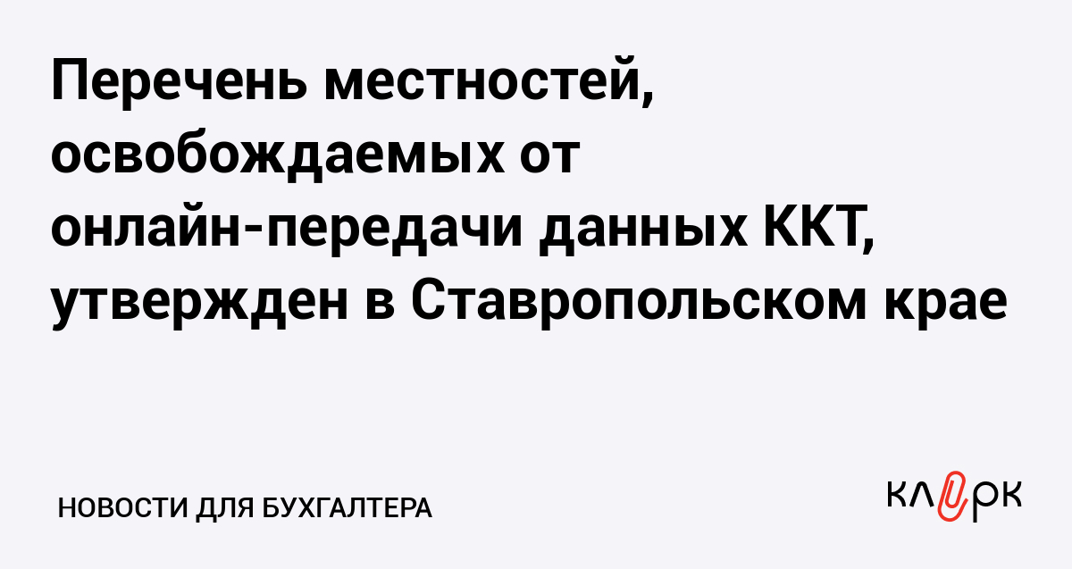 Перечень местностей, освобождаемых от онлайн-передачи данных ККТ, утвержден в Ставропольском крае