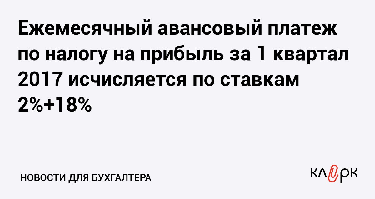 Ежемесячный авансовый платеж по налогу на прибыль за 1 квартал 2017 исчисляется по ставкам 2%+18%