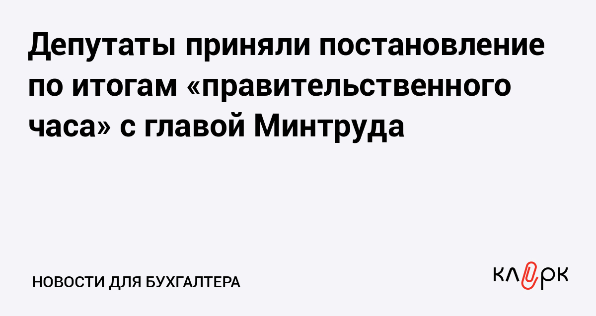 На пленарном заседании 12 апреля нижняя палата Парламента приняла расширенное постановление по итогам состоявшегося 15 марта «правительственного часа» с участием министра труда и социальной защиты Максима Топилина.