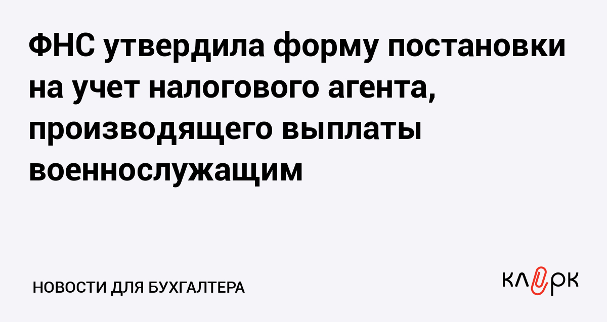 ФНС утвердила форму постановки на учет налогового агента, производящего выплаты военнослужащим