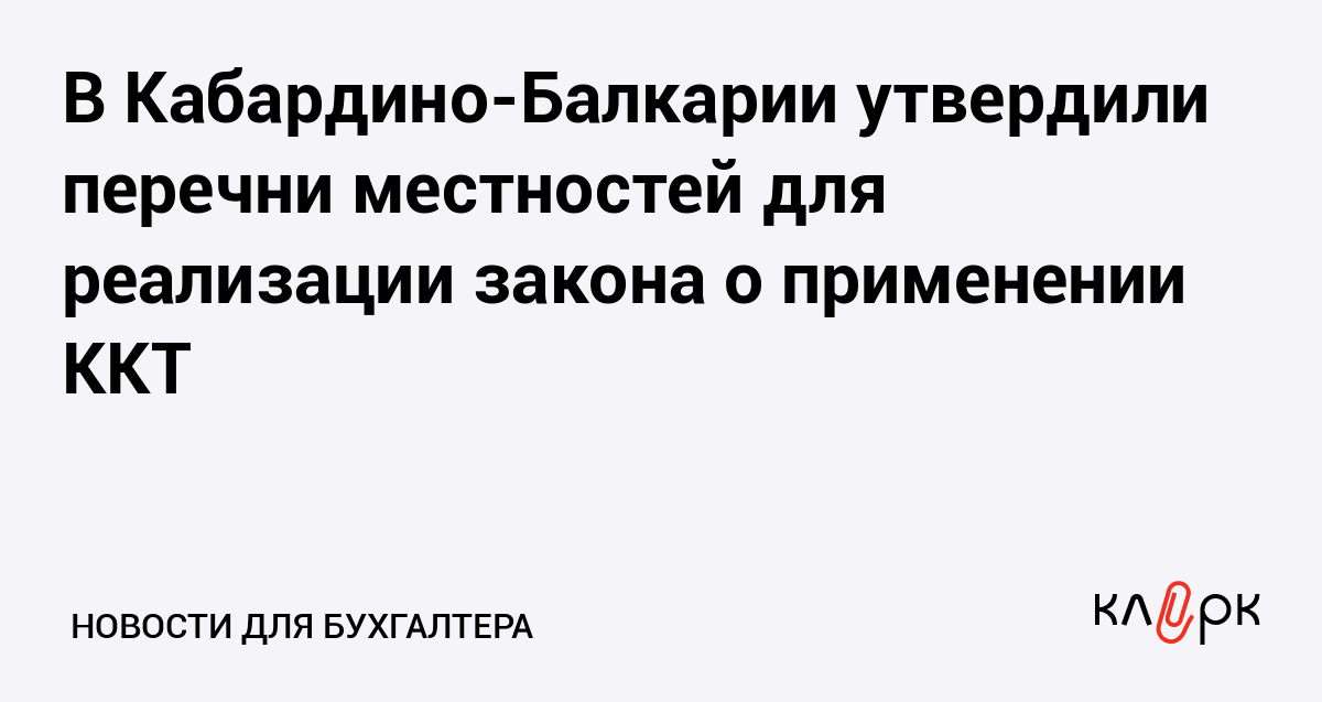 Постановлением Правительства Кабардино-Балкарской Республики от 31.03.2017 № 58-ПП утверждены перечни в рамках реализации Федерального закона от 22.05.2003 N 54-ФЗ "О применении контрольно-кассовой техники при осуществлении наличных денежных расчетов и (или) расчетов с использованием электронных средств платежа".