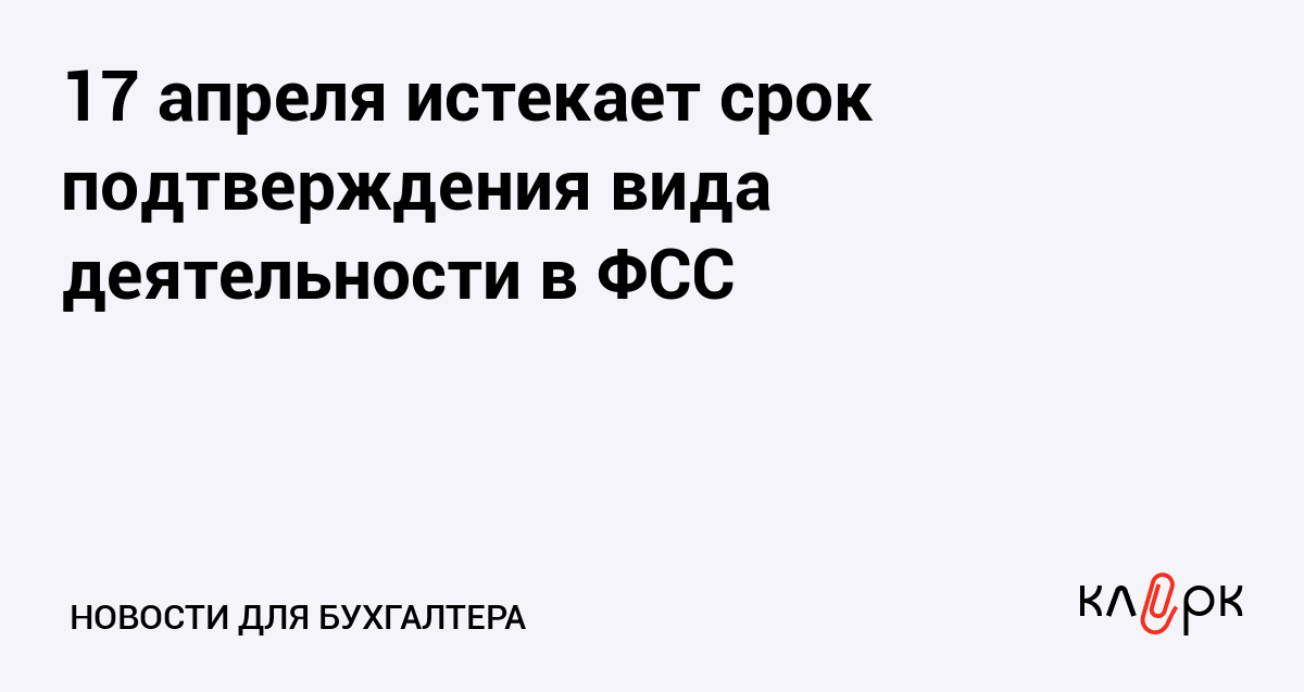 17 апреля истекает срок подтверждения вида деятельности в ФСС