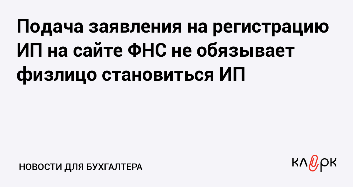 Подача заявления на регистрацию ИП на сайте ФНС не обязывает физлицо становиться ИП