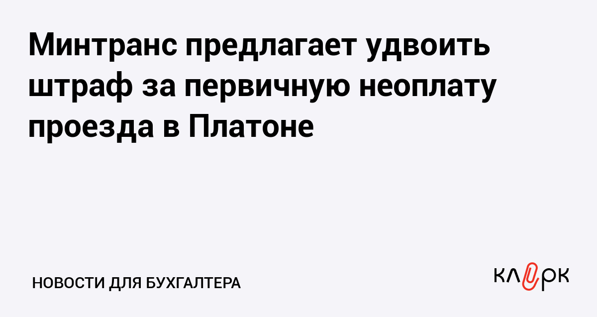 Минтранс предлагает удвоить штраф за первичную неоплату проезда в Платоне