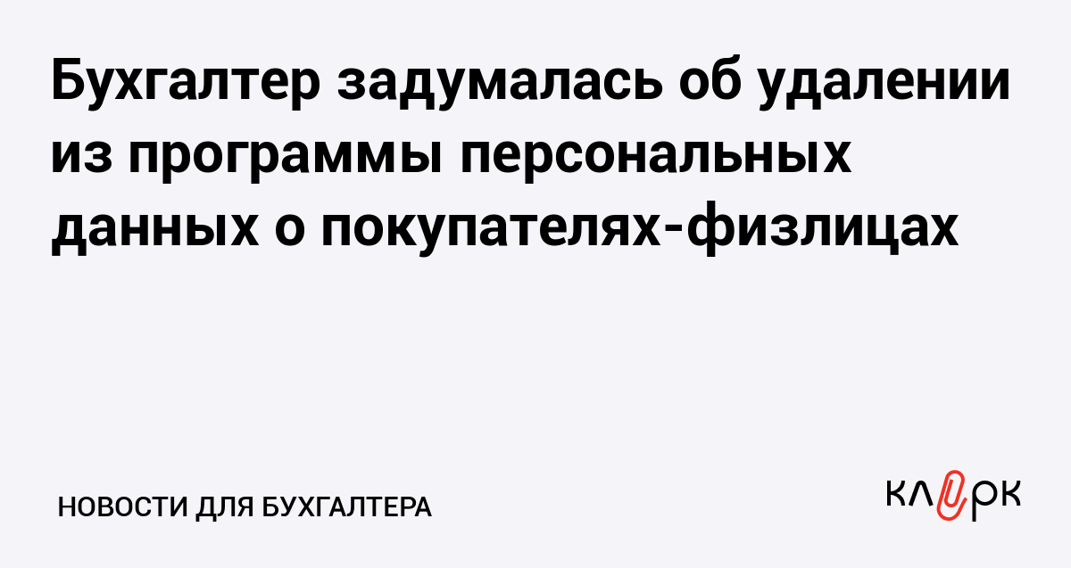 Бухгалтер задумалась об удалении из программы персональных данных о покупателях-физлицах