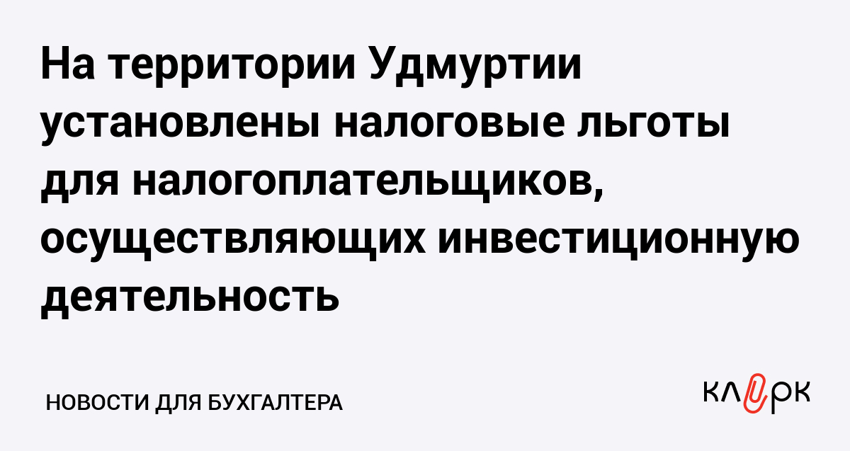 На территории Удмуртии установлены налоговые льготы для налогоплательщиков, осуществляющих инвестиционную деятельность