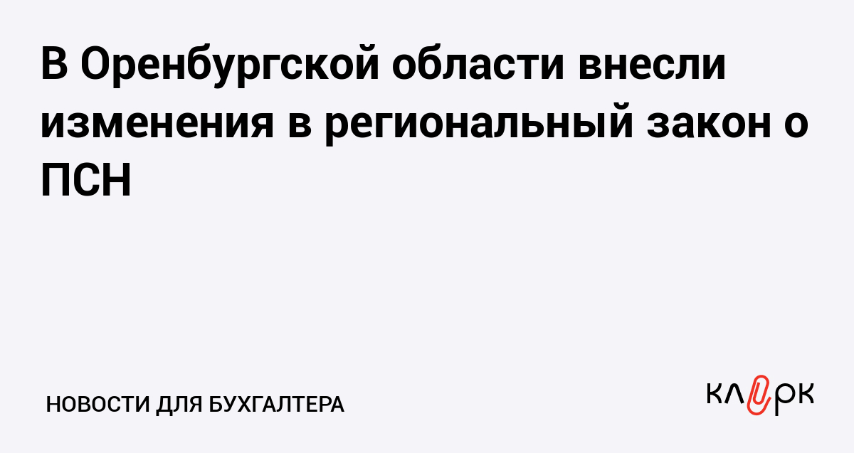 В Оренбургской области внесли изменения в региональный закон о ПСН
