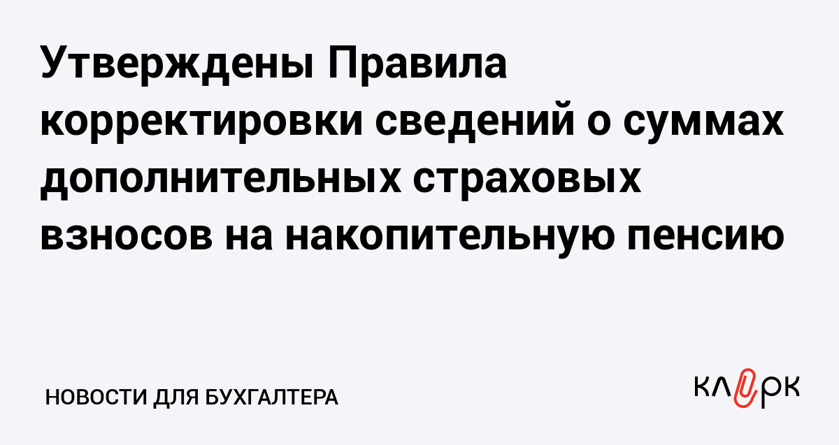 Утверждены Правила корректировки сведений о суммах дополнительных страховых взносов на накопительную пенсию
