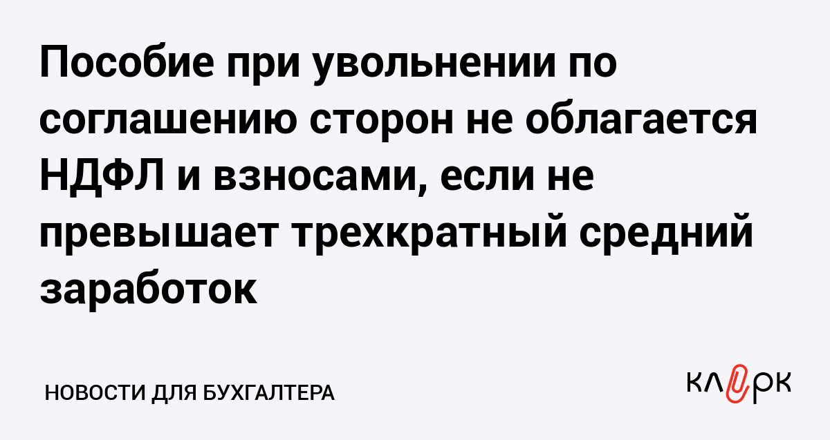 Пособие при увольнении по соглашению сторон не облагается НДФЛ и взносами, если не превышает трехкратный средний заработок