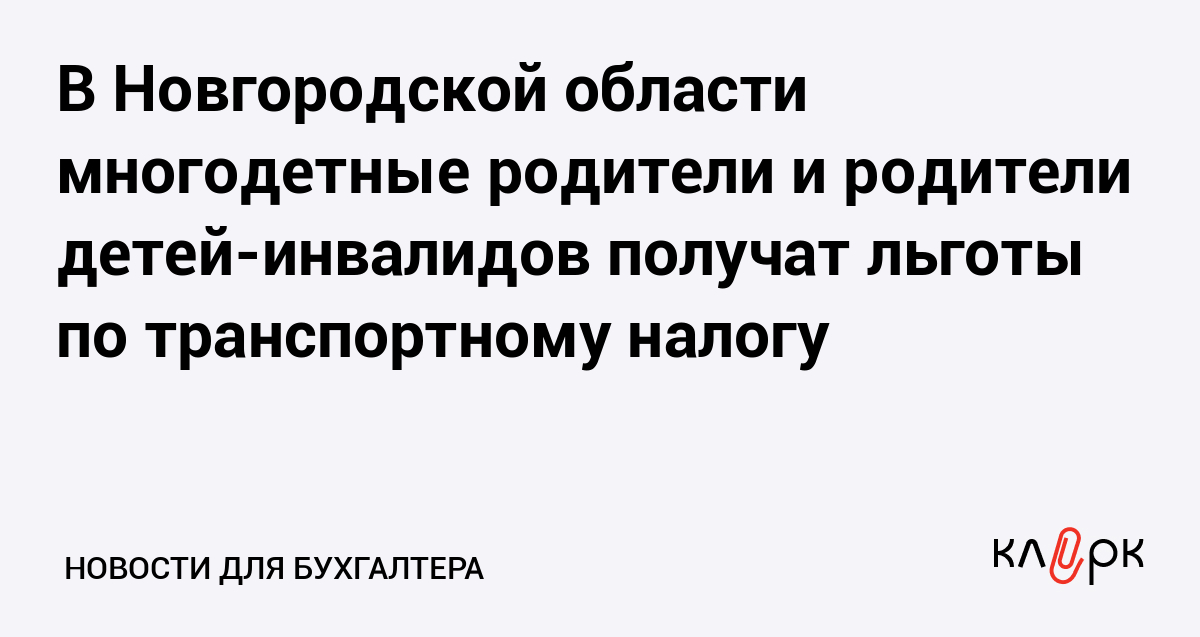 В Новгородской области многодетные родители и родители детей-инвалидов получат льготы по транспортному налогу