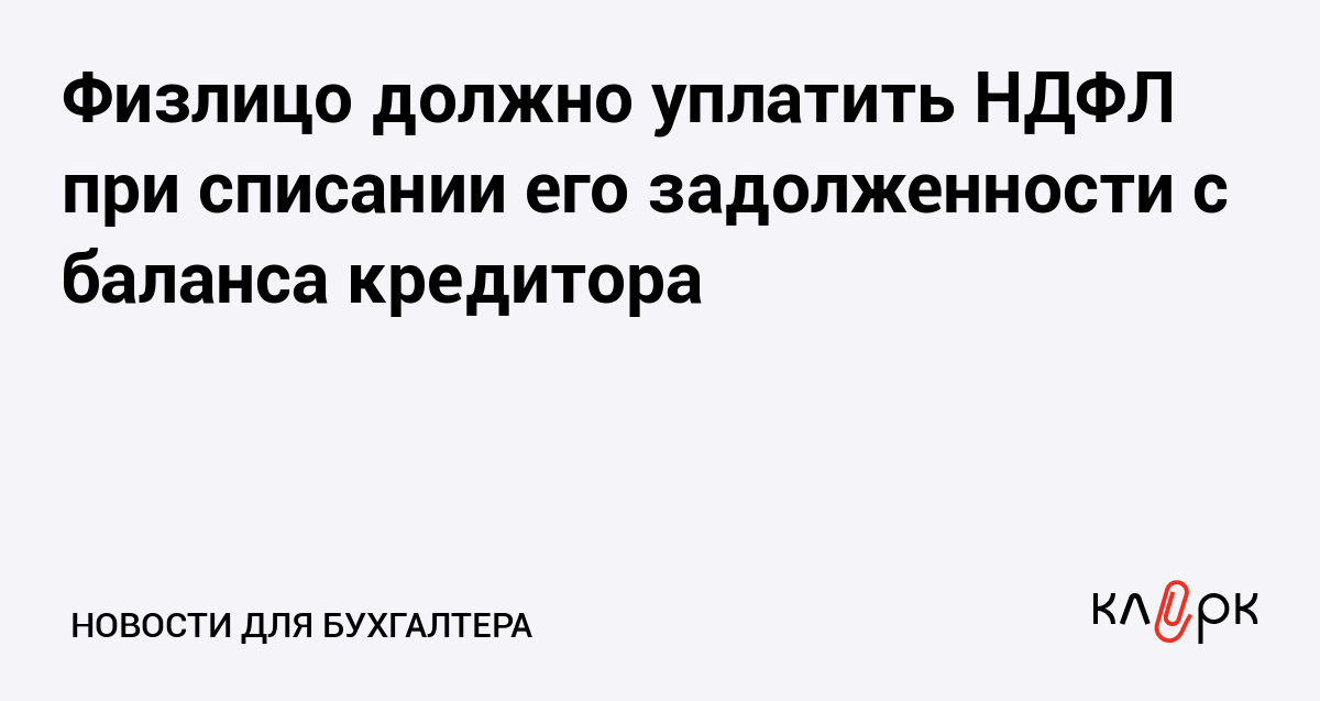 Физлицо должно уплатить НДФЛ при списании его задолженности с баланса кредитора