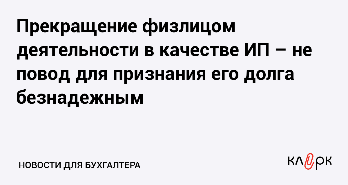 Прекращение физлицом деятельности в качестве ИП – не повод для признания его долга безнадежным