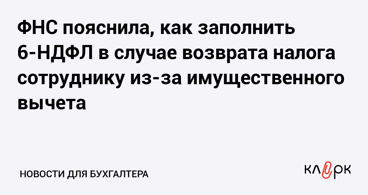ФНС пояснила, как заполнить 6-НДФЛ в случае возврата налога сотруднику из-за имущественного вычета