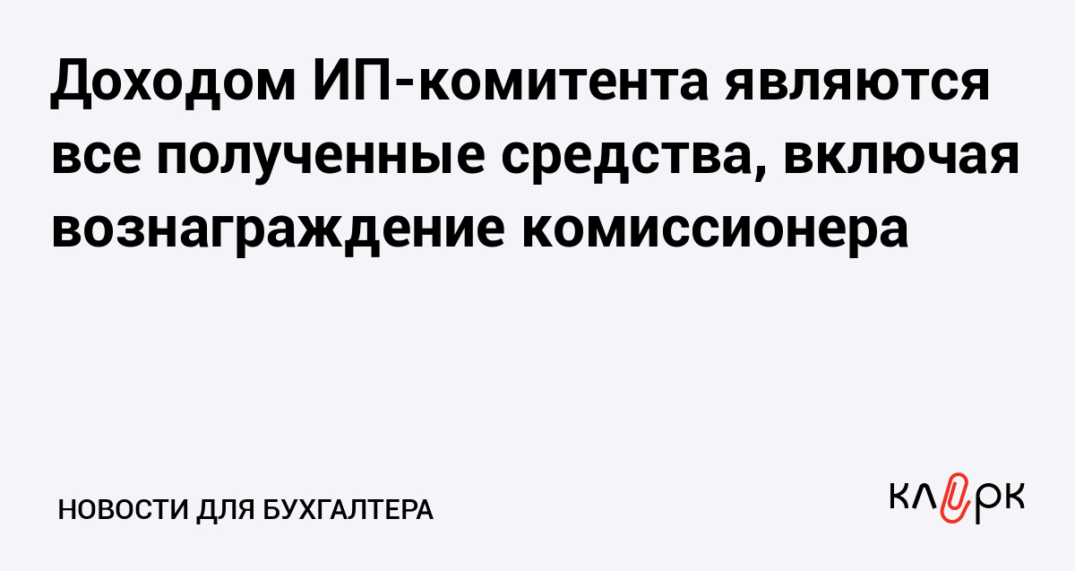 Доходом ИП-комитента являются все полученные средства, включая вознаграждение комиссионера