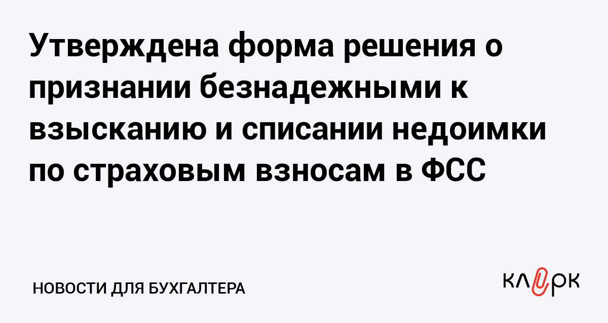 Утверждена форма решения о признании безнадежными к взысканию и списании недоимки по страховым взносам в ФСС