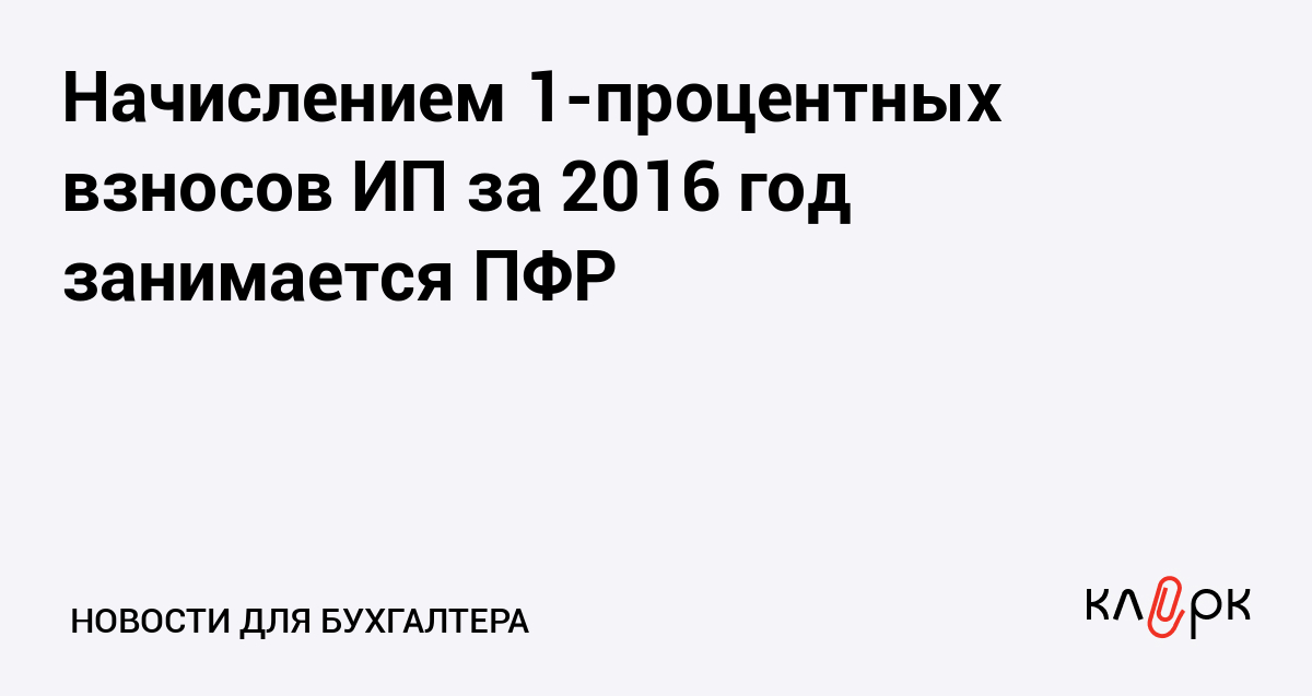 Начислением 1-процентных взносов ИП за 2016 год занимается ПФР