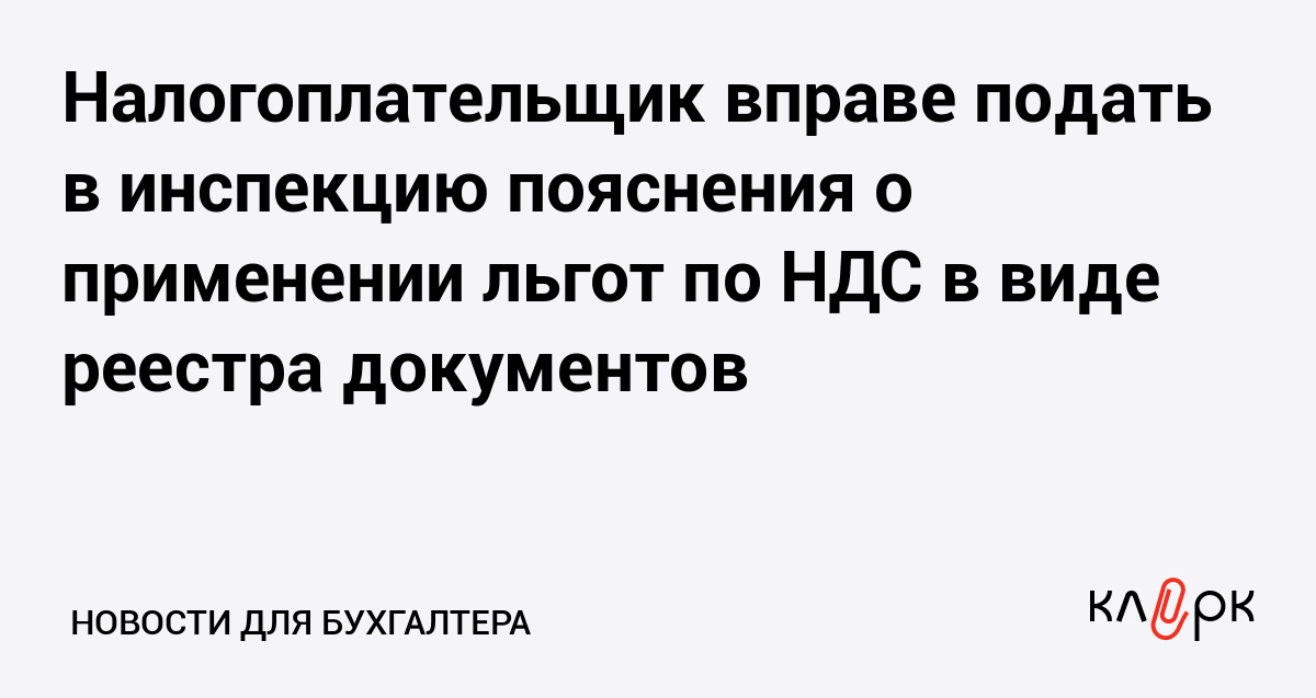 Налогоплательщик вправе подать в инспекцию пояснения о применении льгот по НДС в виде реестра документов