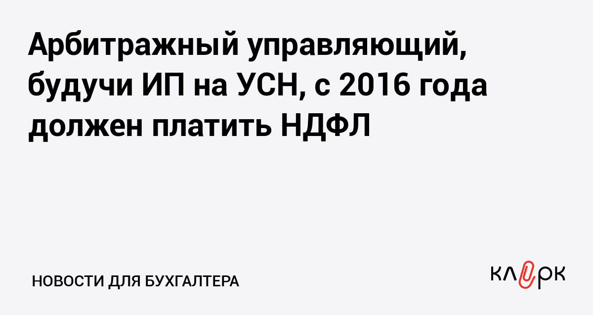 Арбитражный управляющий, будучи ИП на УСН, с 2016 года должен платить НДФЛ
