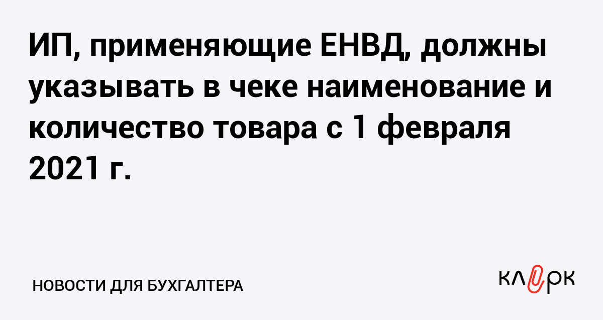 ИП, применяющие ЕНВД, должны указывать в чеке наименование и количество товара с 1 февраля 2021 г.
