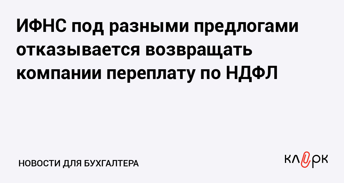 ИФНС под разными предлогами отказывается возвращать компании переплату по НДФЛ