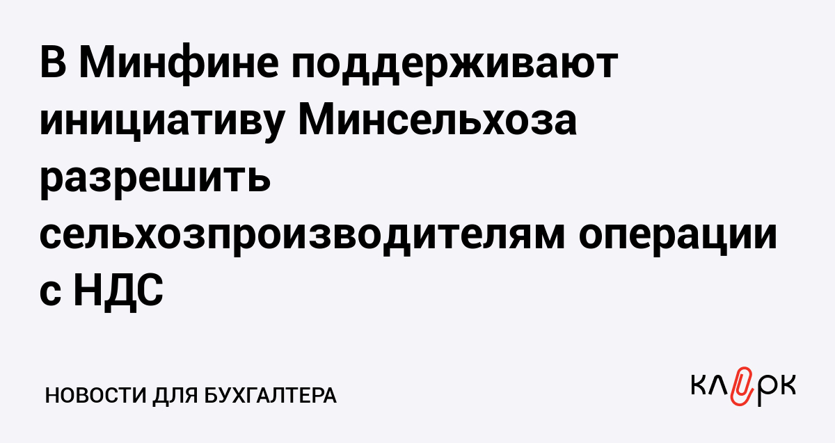 В Минфине поддерживают инициативу Минсельхоза разрешить сельхозпроизводителям операции с НДС