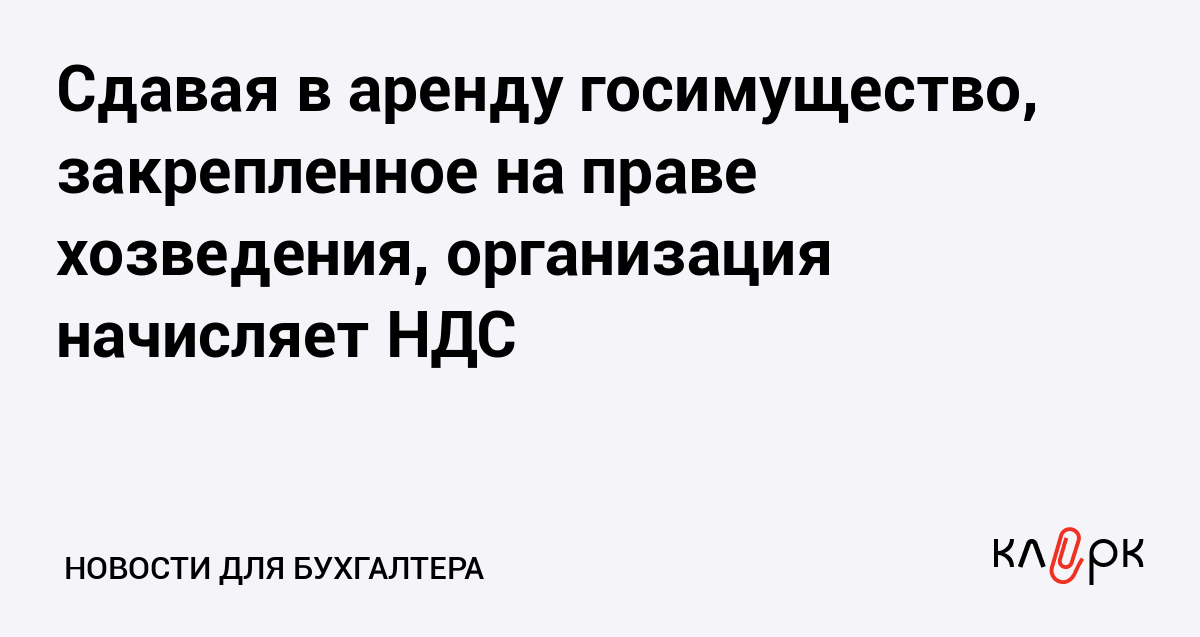 Сдавая в аренду госимущество, закрепленное на праве хозведения, организация начисляет НДС